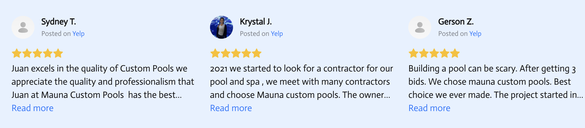 When you work with Mauna Custom Pools, you're not just hiring a contractor —you're partnering with professionals who care about your property as much as you do.